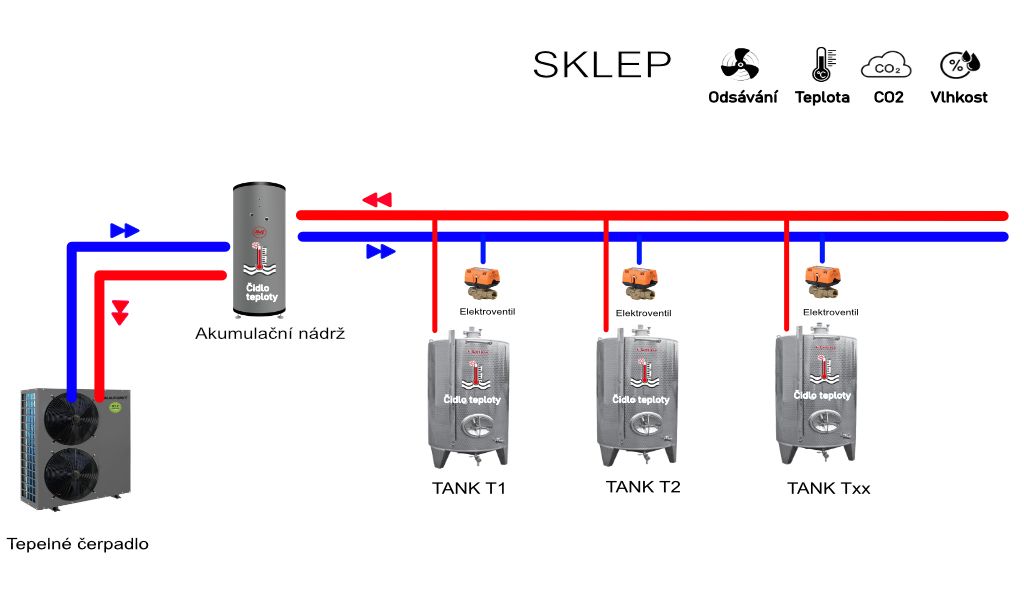 Ve vinařství je teplota moštu v procesu kvašení důležitým parametrem, který ovlivňuje aromatickou složku výsledného produktu, a proto je nutné ji regulovat a mošty ochlazovat. Tento systém lze využít i v okamžiku potřeby zvyšování teploty vína.