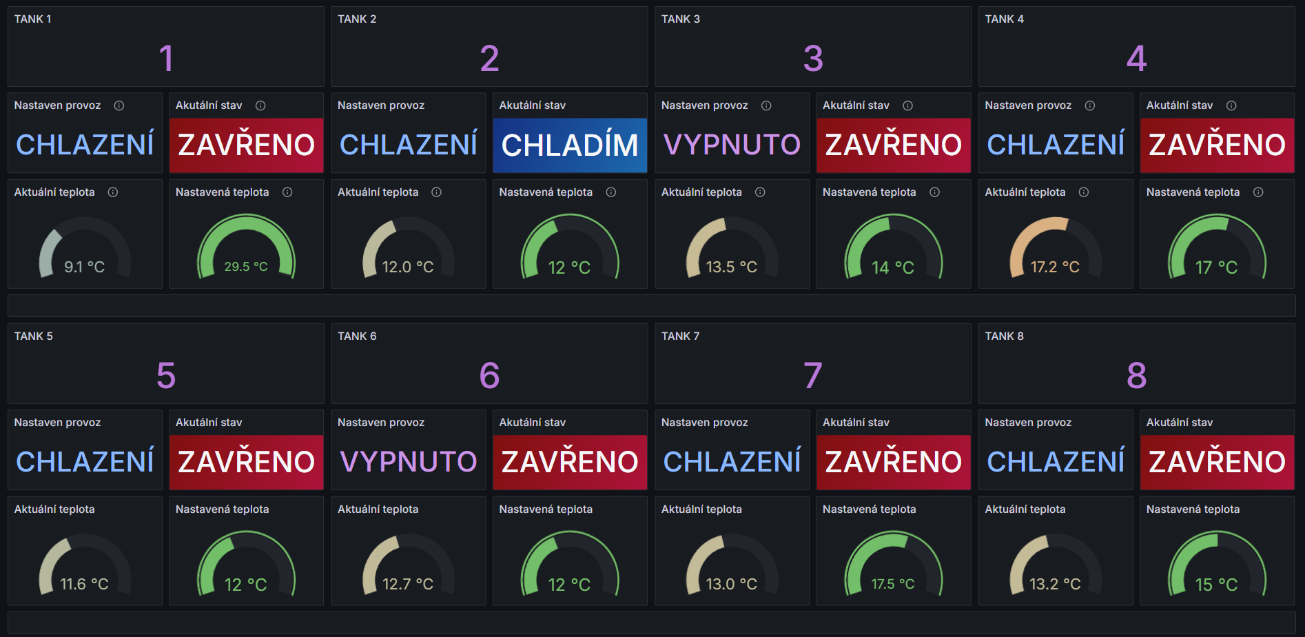 Konstrukce systému je modulární – umožňuje snadné rozšiřování o další tanky, senzory i nové funkce, například plánování režimů nebo automatické přepínání topení/chlazení.
